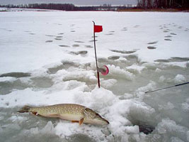 Зимняя ловля рыбы жерлицами проста, добычлива и доступна каждому. Ловля зимними жерлицами рассчитана на хищных рыб, главным образом, щуку, судака, налима, окуня. Зимняя жерлица отличается от летней только тем, что рогулька ее делается не из древесины, а из толстой проволоки или пластмассы. Это необходимо потому, что жерлицы во время ловли должны находиться в воде в 8—10 см от поверхности. Конструкций зимних живцовых жерлиц много. Но они отличаются лишь в деталях, в главном же похожи друг на друга. Каждая имеет свой удильник; на нем — мотовильце или катушку с запасом лески; на леске — скользящее (типа оливки) грузило; короткий (15—20 см) поводок с двойным или тройным крючком на конце и сторожок.