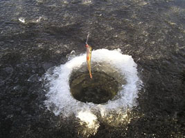 Ужение зимней удочкой на мормышку Суть ловли на мормышку заключается в том, что в воде она сама непрерывно движется и заставляет двигаться на садку. Колебания мормышки рыба воспринимает как шевеление чего-то живого и набрасывается на насадку. Для ловли рыбы на мормышку с успехом можно при менять удилища, предназначенные для поплавочной удочки. Тонкий конец удилища в этом случае не должен быть жестким. |